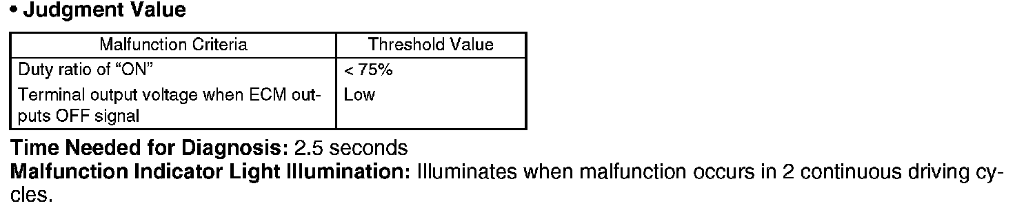 Judge NG when the cumulative time until completing all the malfunction criteria becomes more than the time (2.5 seconds) needed for diagnosis.
