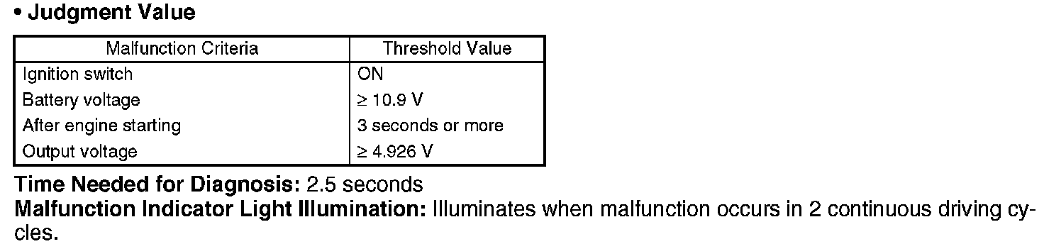 Judge NG when the continuous time of completing the malfunction criteria becomes more than the time needed for diagnosis (2.5 seconds).