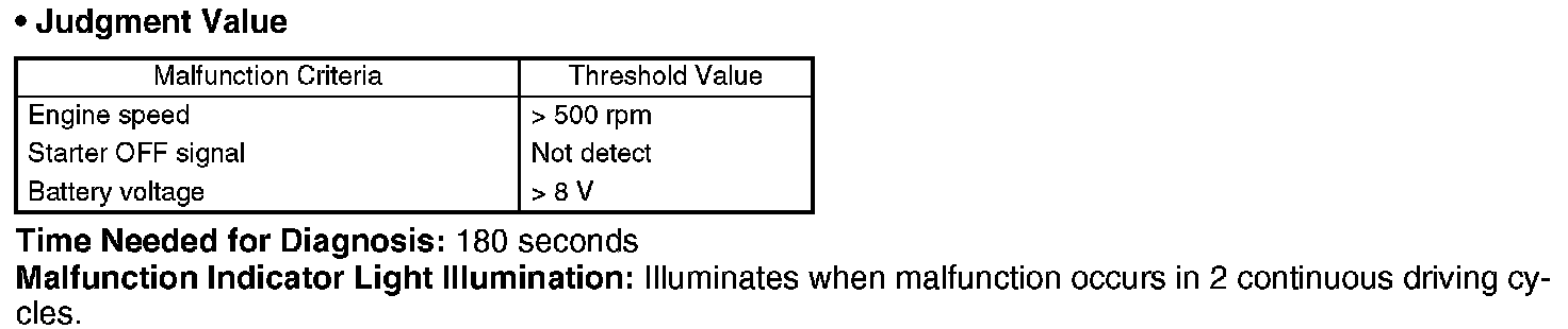 Judge NG when the continuous time of completing the malfunction criteria becomes more than 3 minutes.