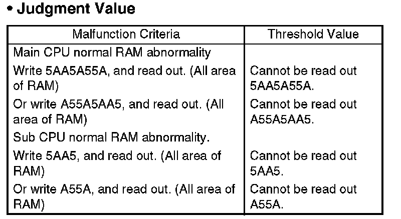 At initial routine, write the data to all area of RAM. Judge OK when same data can be read out, and judge NG