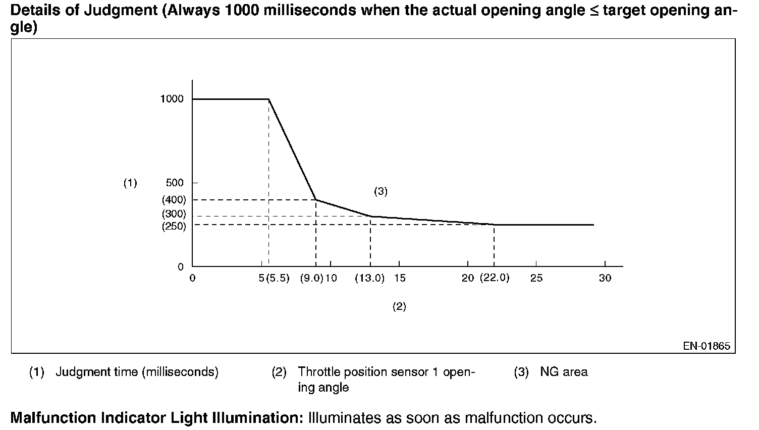 Target opening angle and actual opening angle: 250 milliseconds (For NG) 2000 milliseconds (For OK)