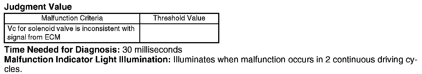 Judge NG when the shift solenoid 2 becomes battery short, ground short or open circuit.