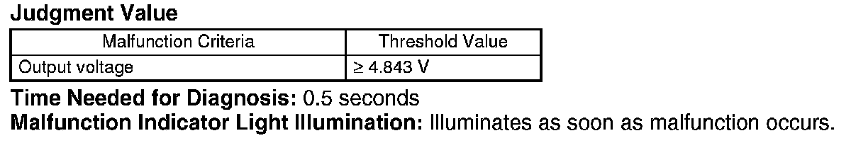 Judge NG when the continuous time of completing the malfunction criteria becomes more than the time needed for diagnosis (0.5 seconds). Judge OK and clear NG when the malfunction criteria are not completed.