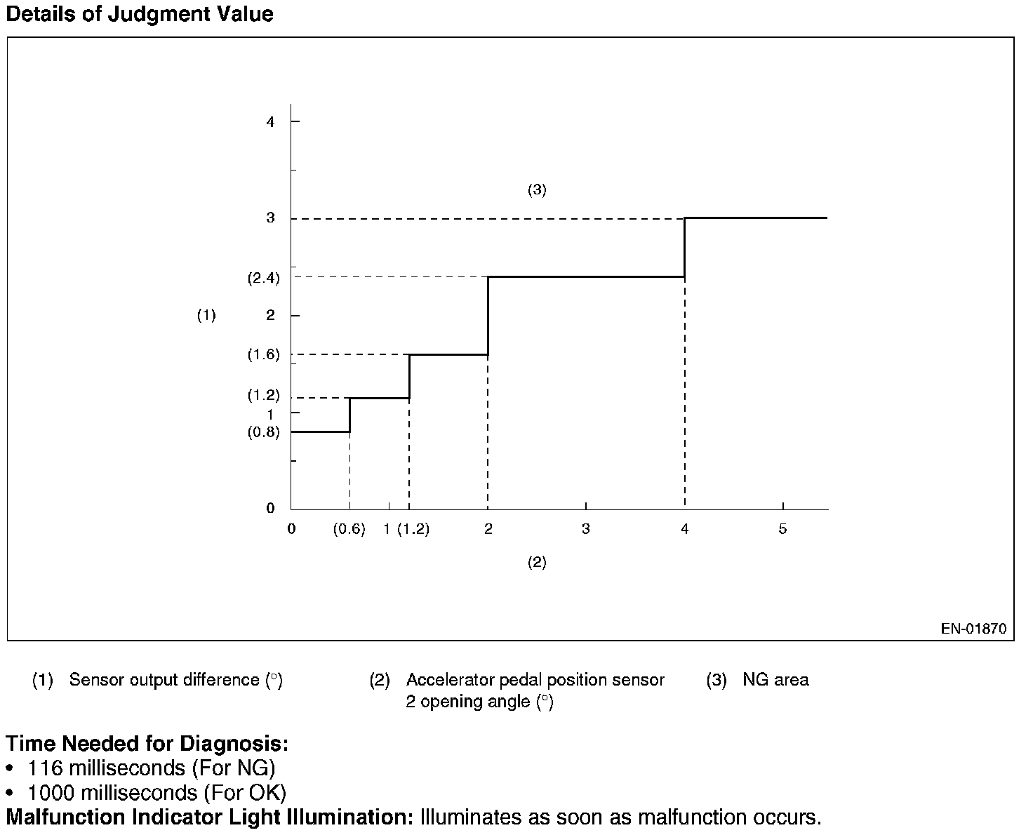 Judge NG when the signal level of throttle position sensor 1 is different from the throttle position sensor 2.