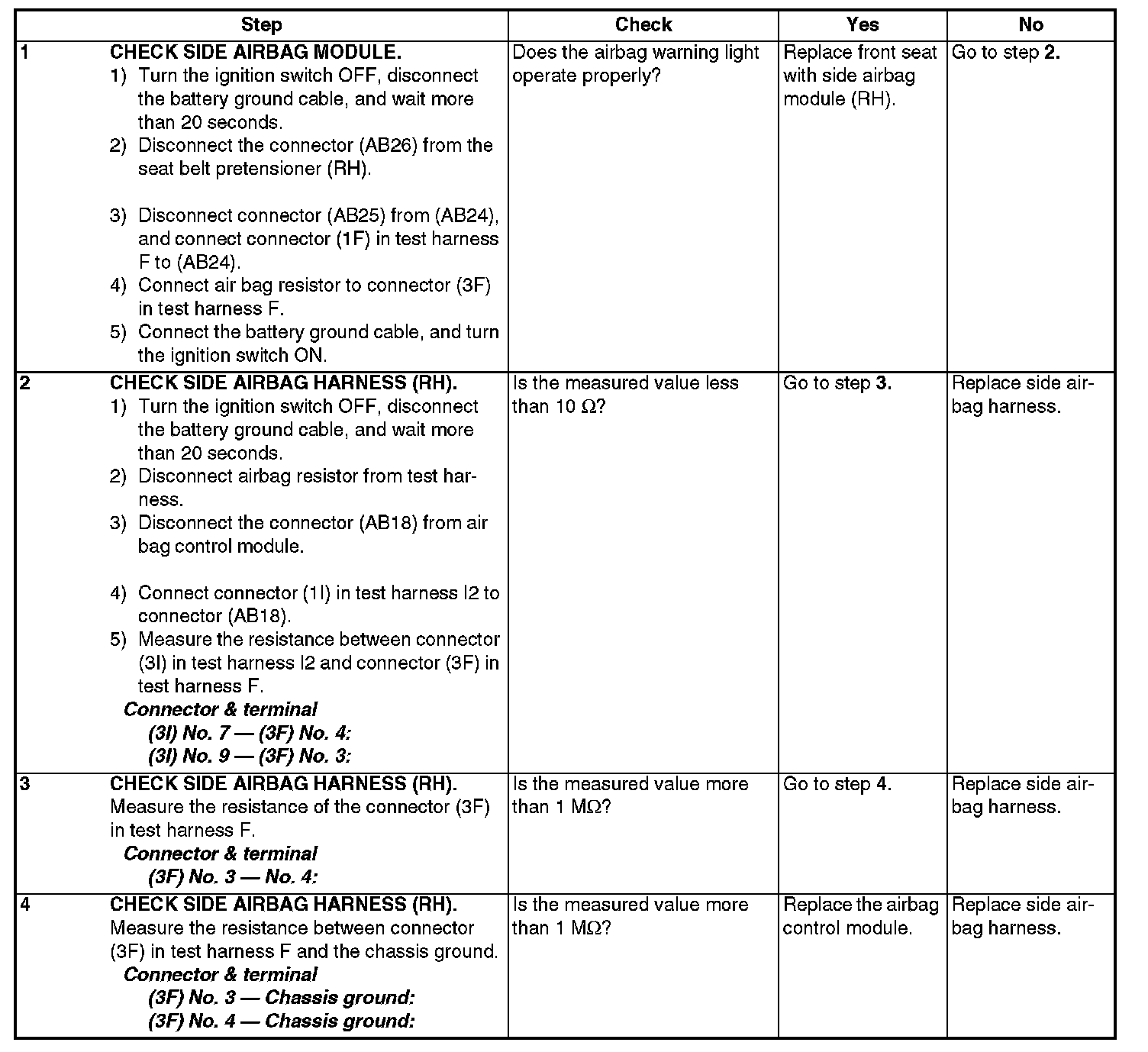 - Side airbag harness (RH) is faulty.