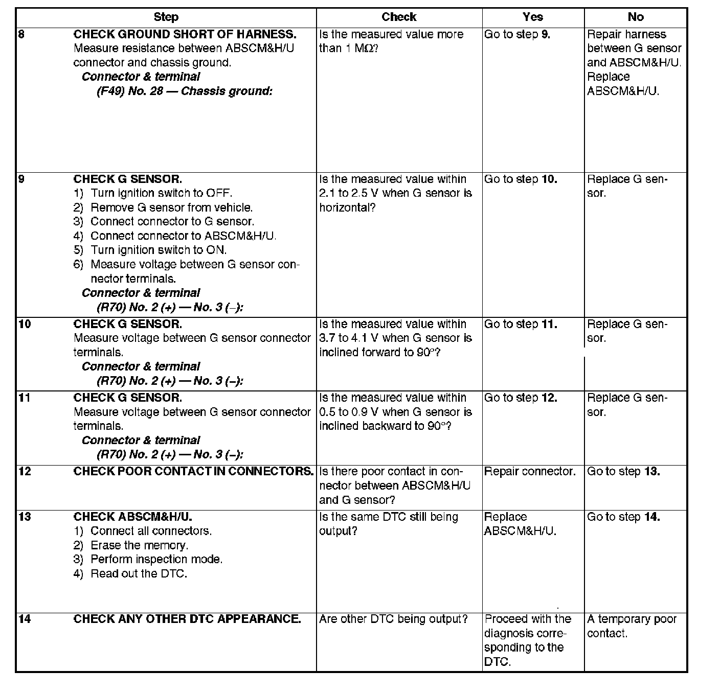 DTC 56 ABNORMAL G SENSOR OUTPUT VOLTAGE