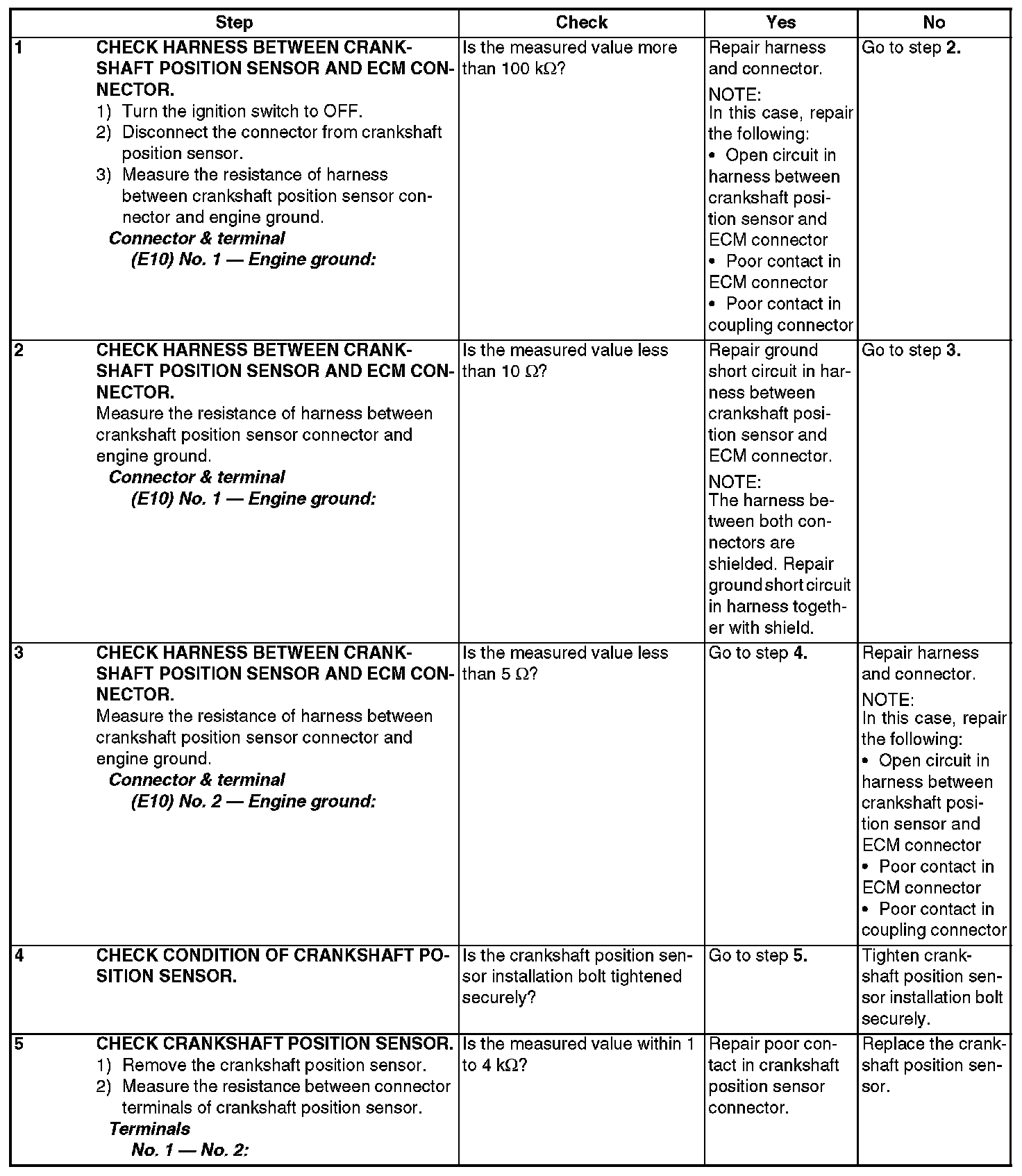 DTC P0335 - CRANKSHAFT POSITION SENSOR "A" CIRCUITDTC DETECTING CONDITION