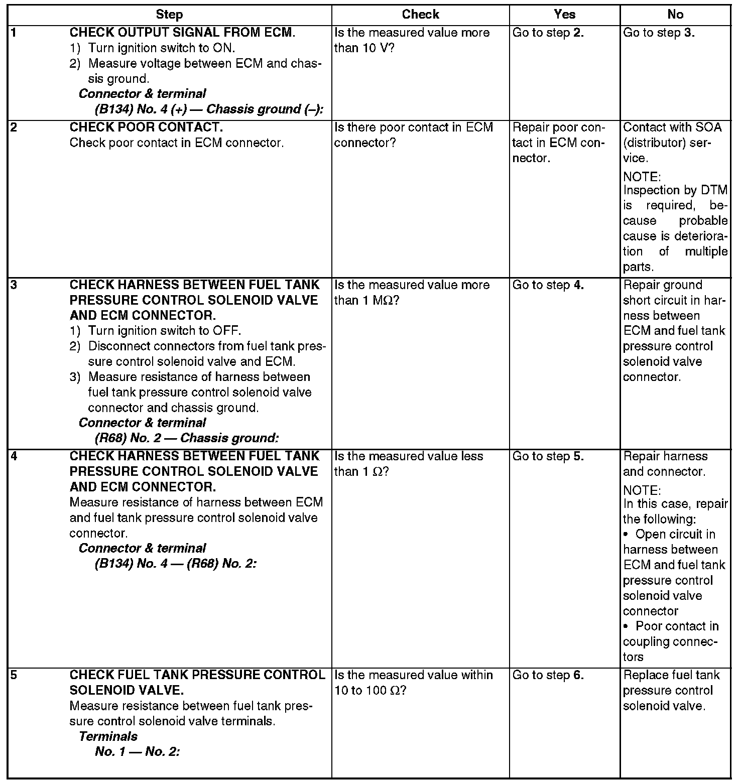 DTC P1400 - FUEL TANK PRESSURE CONTROL SOLENOID VALVE CIRCUIT LOWDTC DETECTING CONDITION