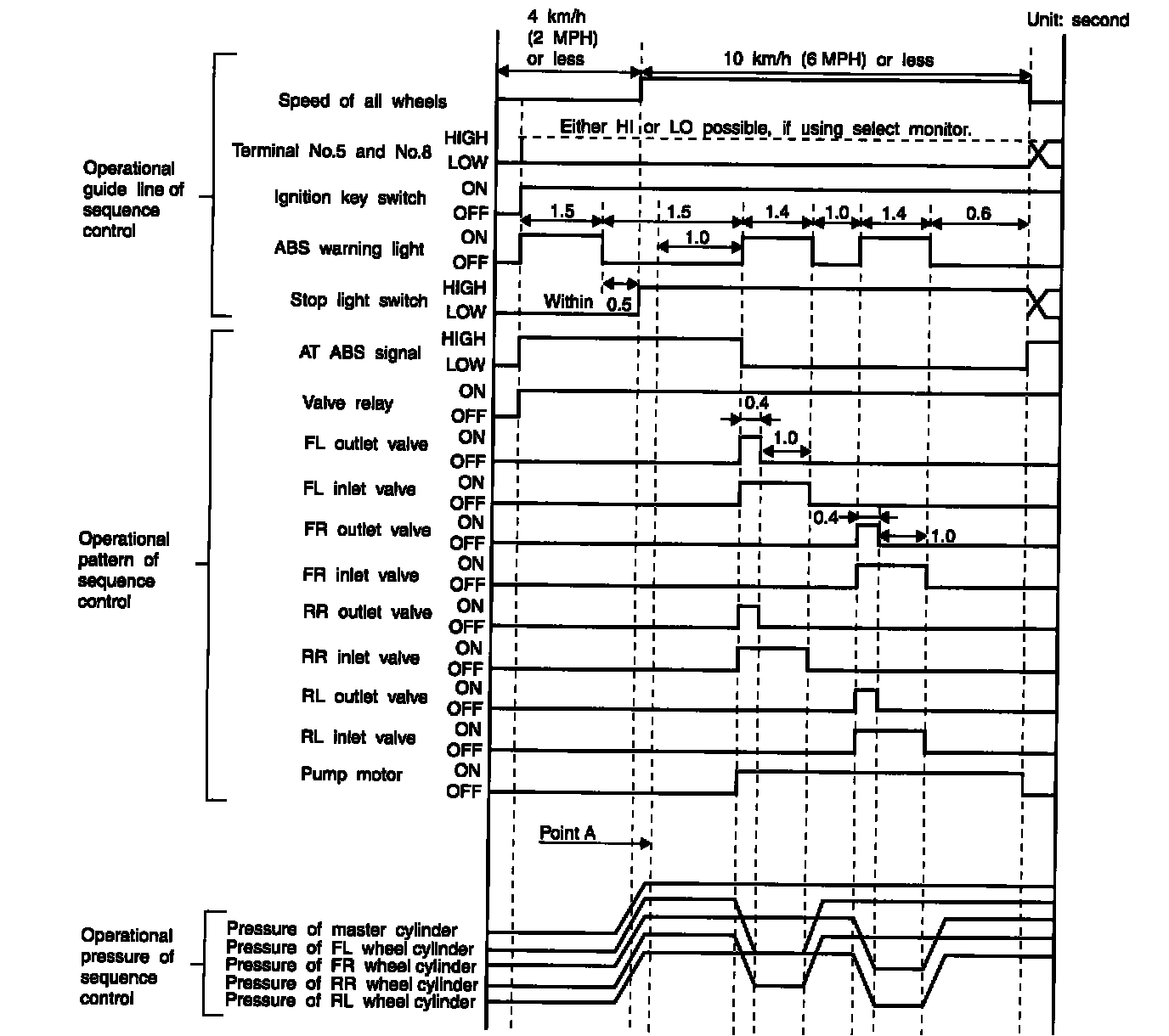 ^ In the event of any trouble, the sequence control may not be operative. In such a case, activate the sequence control, referring to "ABS SEQUENCE CONTROL WITH DIAGNOSIS CONNECTOR".