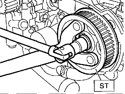 6. Remove camshaft sprocket No. 1 and No. 2. To lock camshaft, use ST.