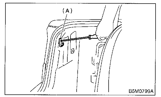 3. Remove hook (A) and then turn over the trunk side trim of rear portion.