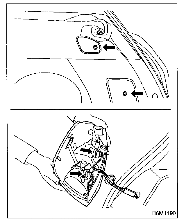 5. Remove three nuts and then detach rear combination light while disconnecting connector.