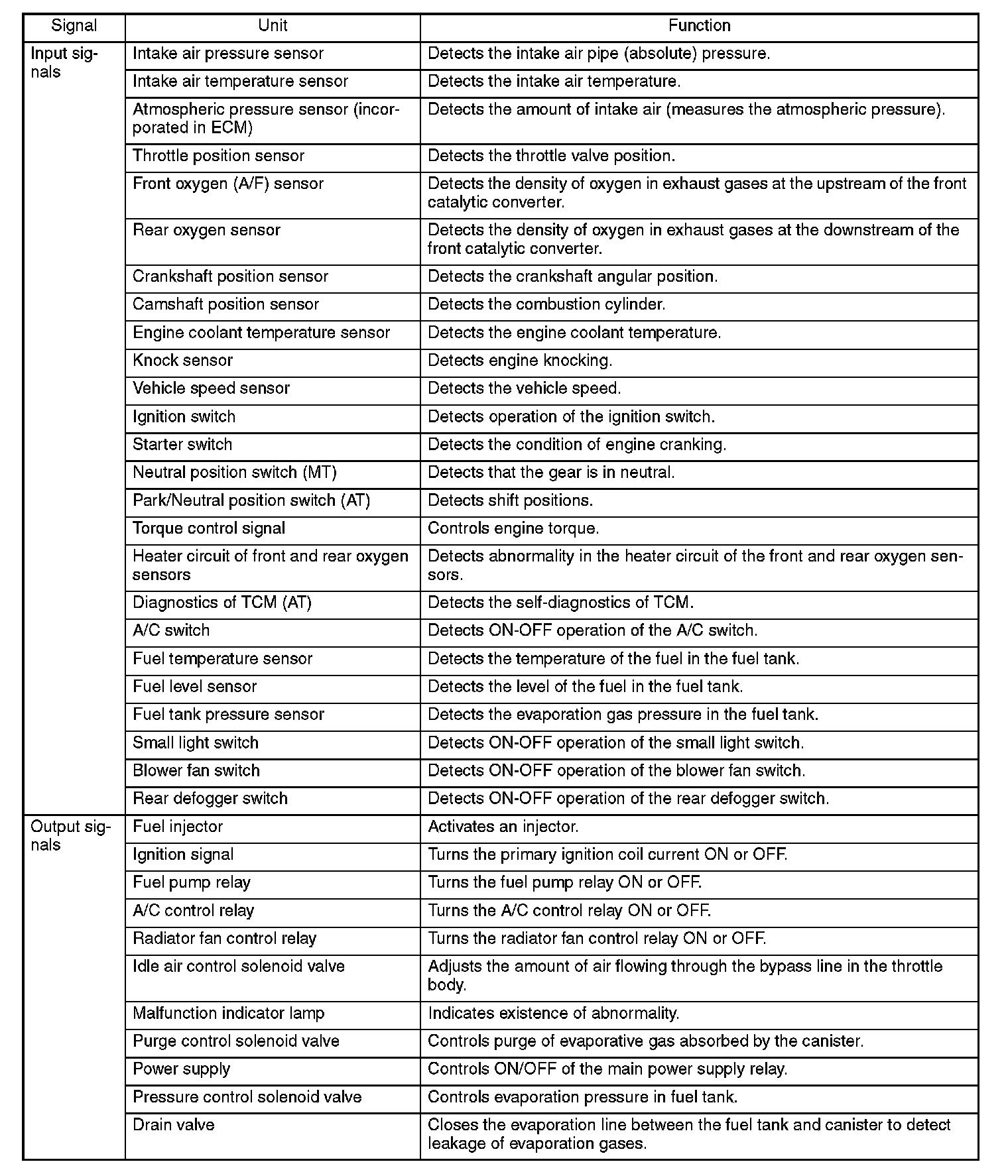 - The ECM receives signals from various sensors and based on them, it determines the amount of fuel injected and the fuel injection timing. It performs the sequential fuel injection control over the entire engine operating range except during start-up of the engine.