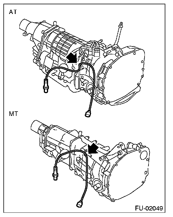 5. Apply SUBARU CRC or its equivalent to threaded portion of front oxygen sensor, and leave it for one minute or more.