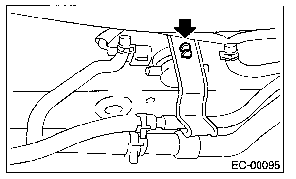 5. Disconnect two evaporation hoses from pressure control solenoid valve.