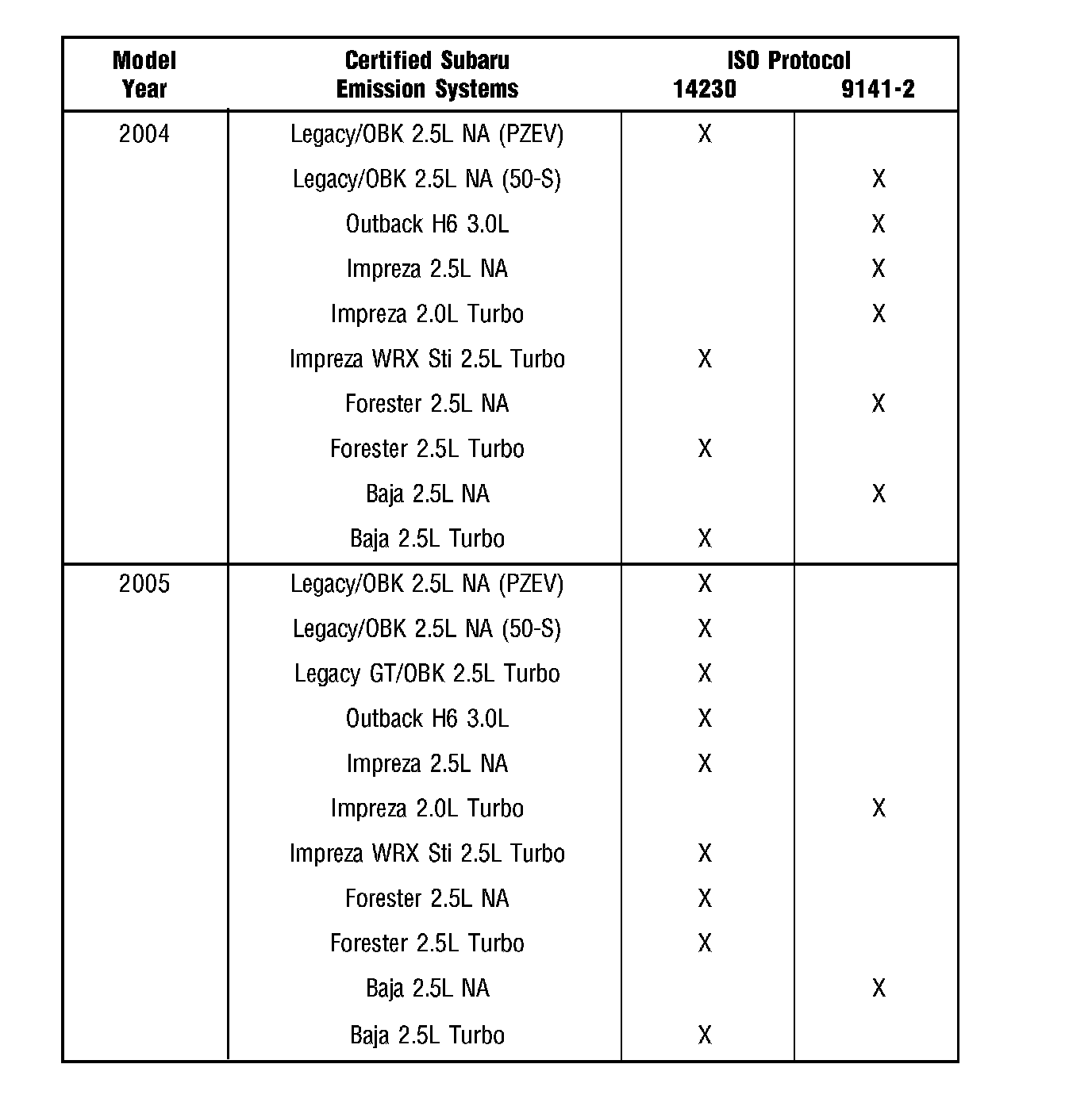 The generic scan tool (GST) used for OBD I/M Check inspection by State I/M Program. Listed by model for 2004-2005 Subaru vehicles are the proper scan tool communication protocols. Earlier Subaru models use ISO 9141-2.
