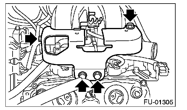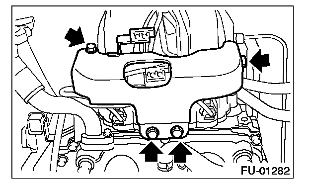 2. Remove bolts which hold power steering pipes onto intake manifold protector.