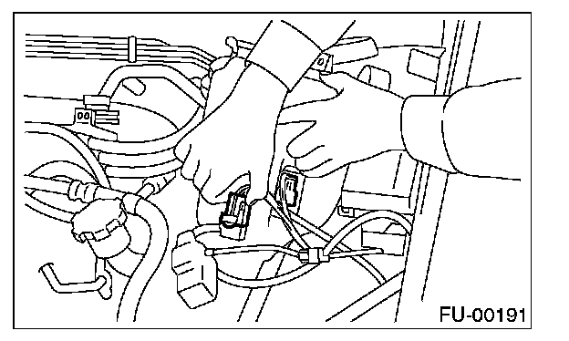 7. Disconnect rear window glass washer hose from washer motor, then plug connection with a suitable cap.