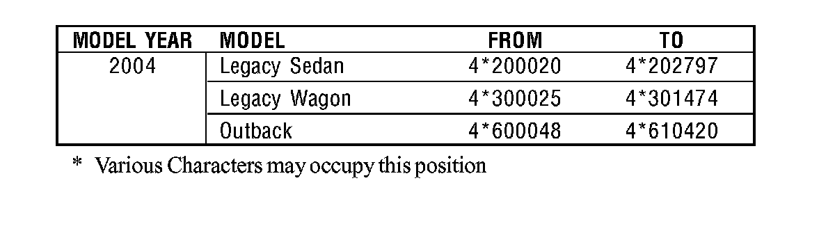 Certain 2004 model year Legacy and Outback vehicles.