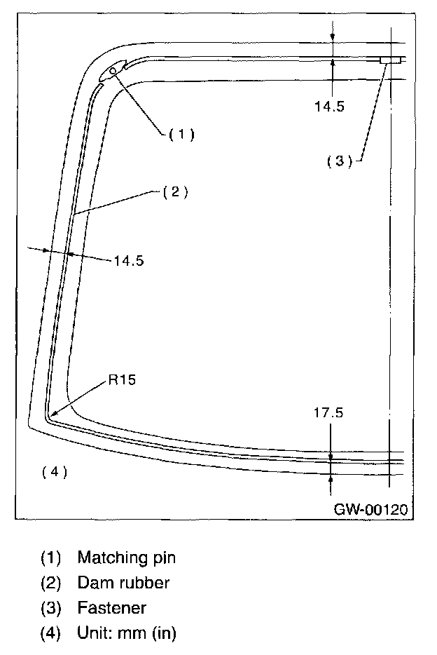 NOTE: For minimum drying time and time the vehicle must be left standing before driving after bonding, follow instructions or instruction manual from the adhesive manufacturer.