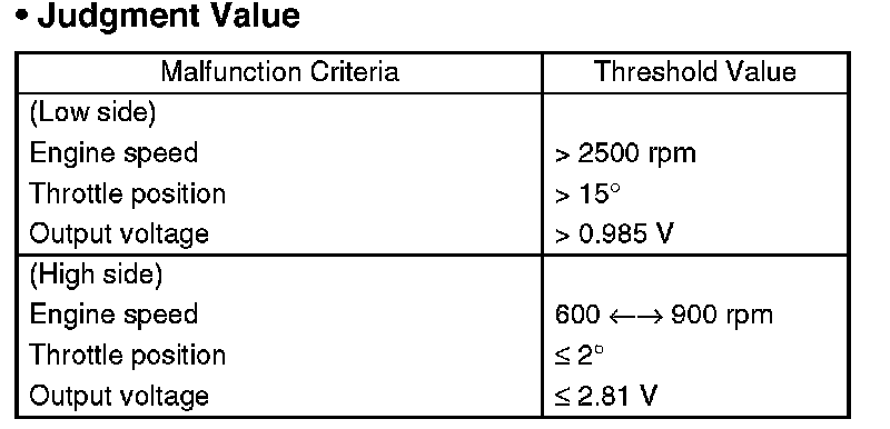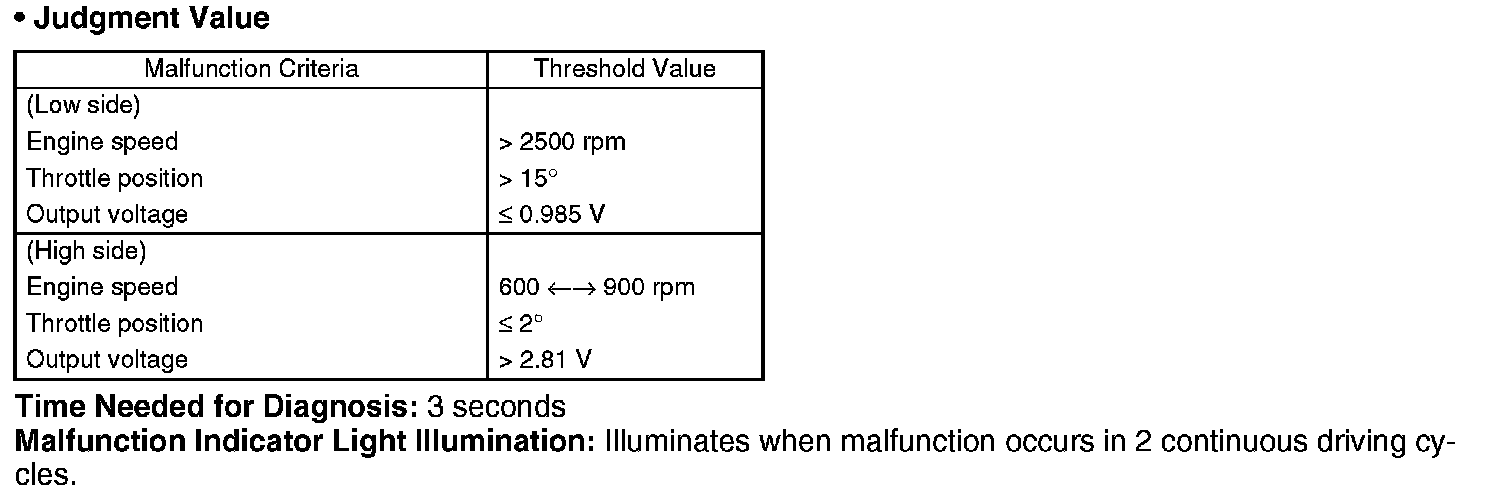 Judge NG when the continuous time of completing all the malfunction criteria of Low side or High side below becomes more than the time (3 seconds) needed for diagnosis.