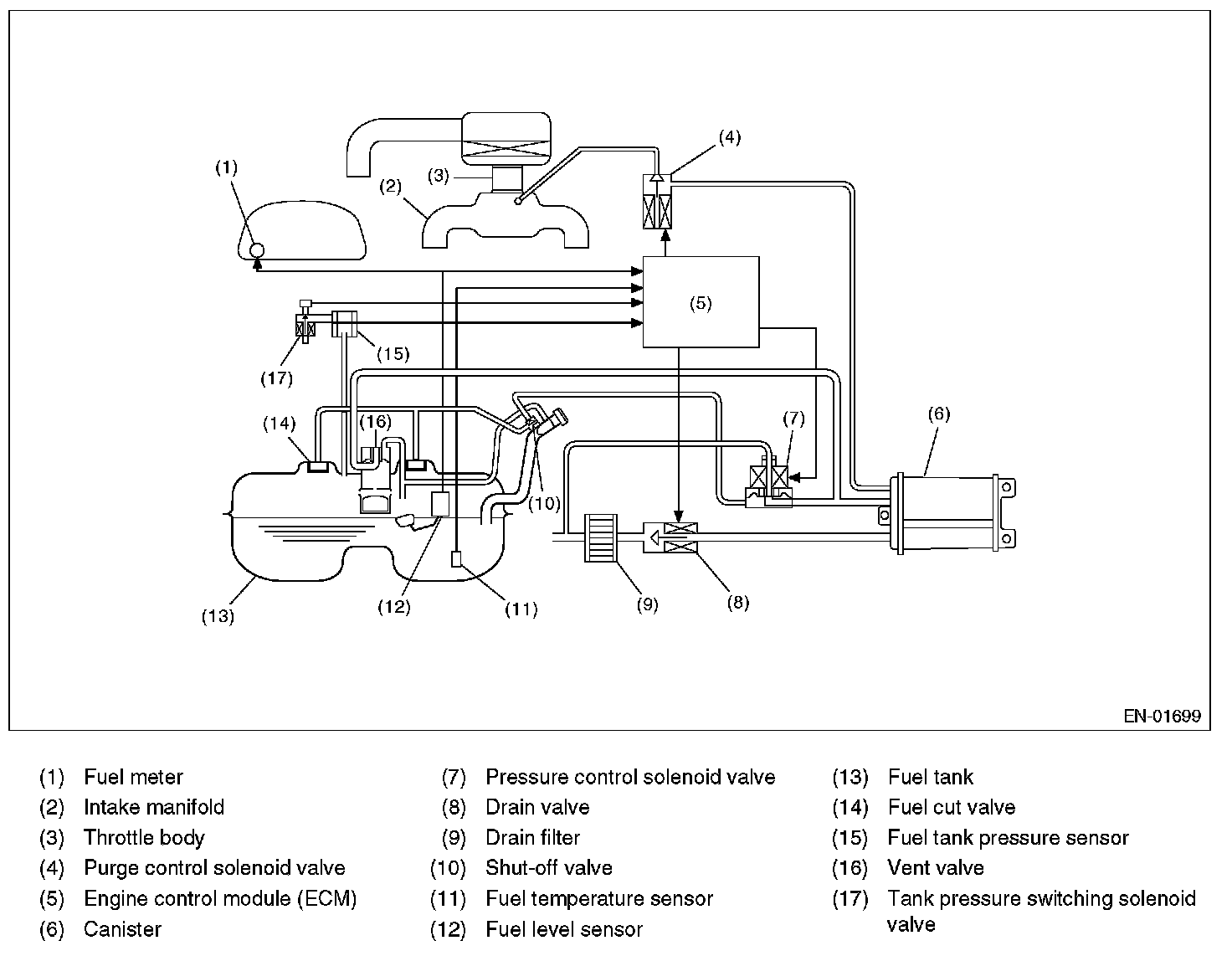 Fuel system is diagnosed by comparing the target air fuel ratio calculated by ECM with the actual air fuel ratio measured by sensor.
