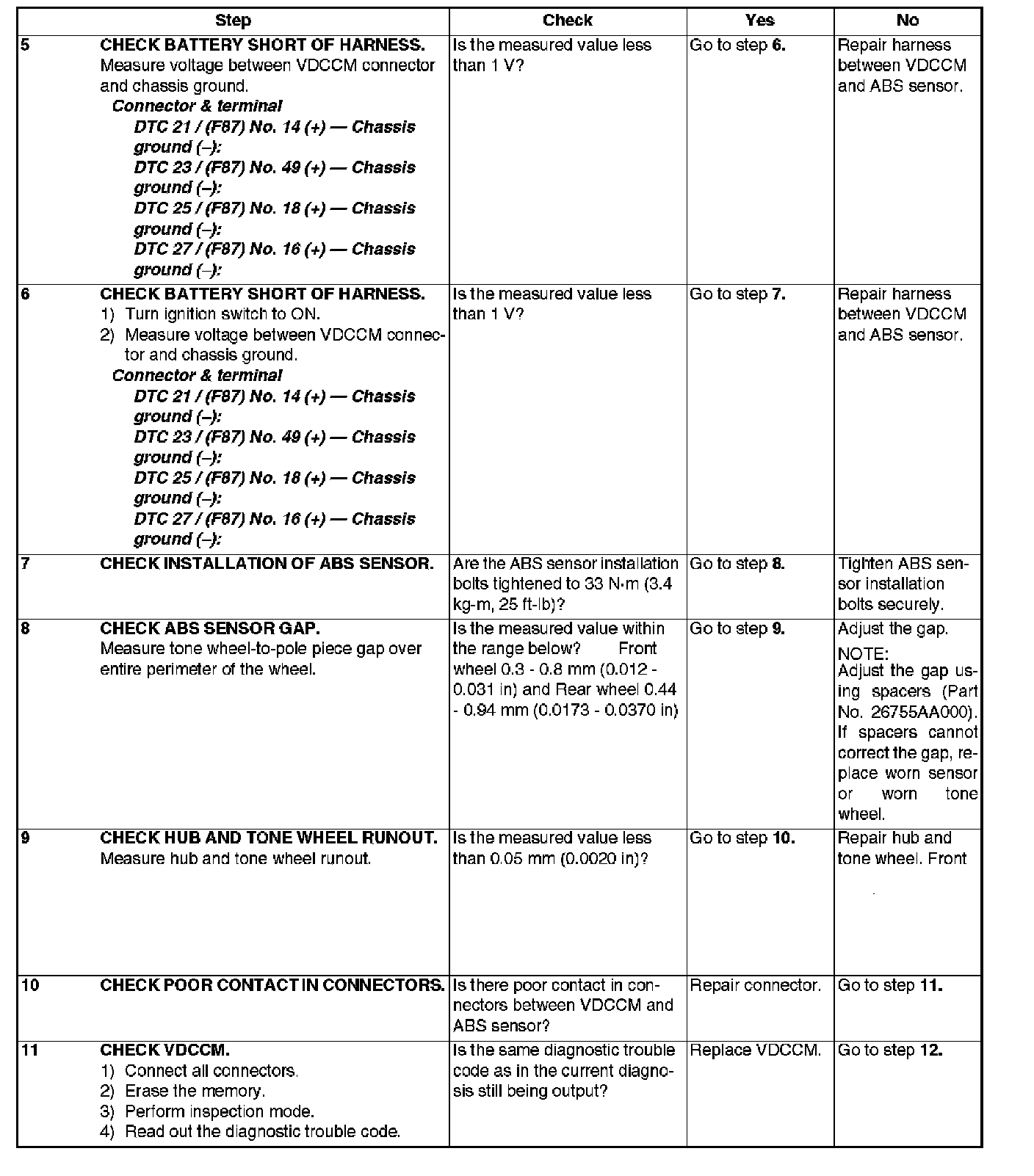 DTC 27 ABNORMAL ABS SENSOR (OPEN CIRCUIT OR INPUT VOLTAGE TOO HIGH) (REAR LH)Steps 1-4: