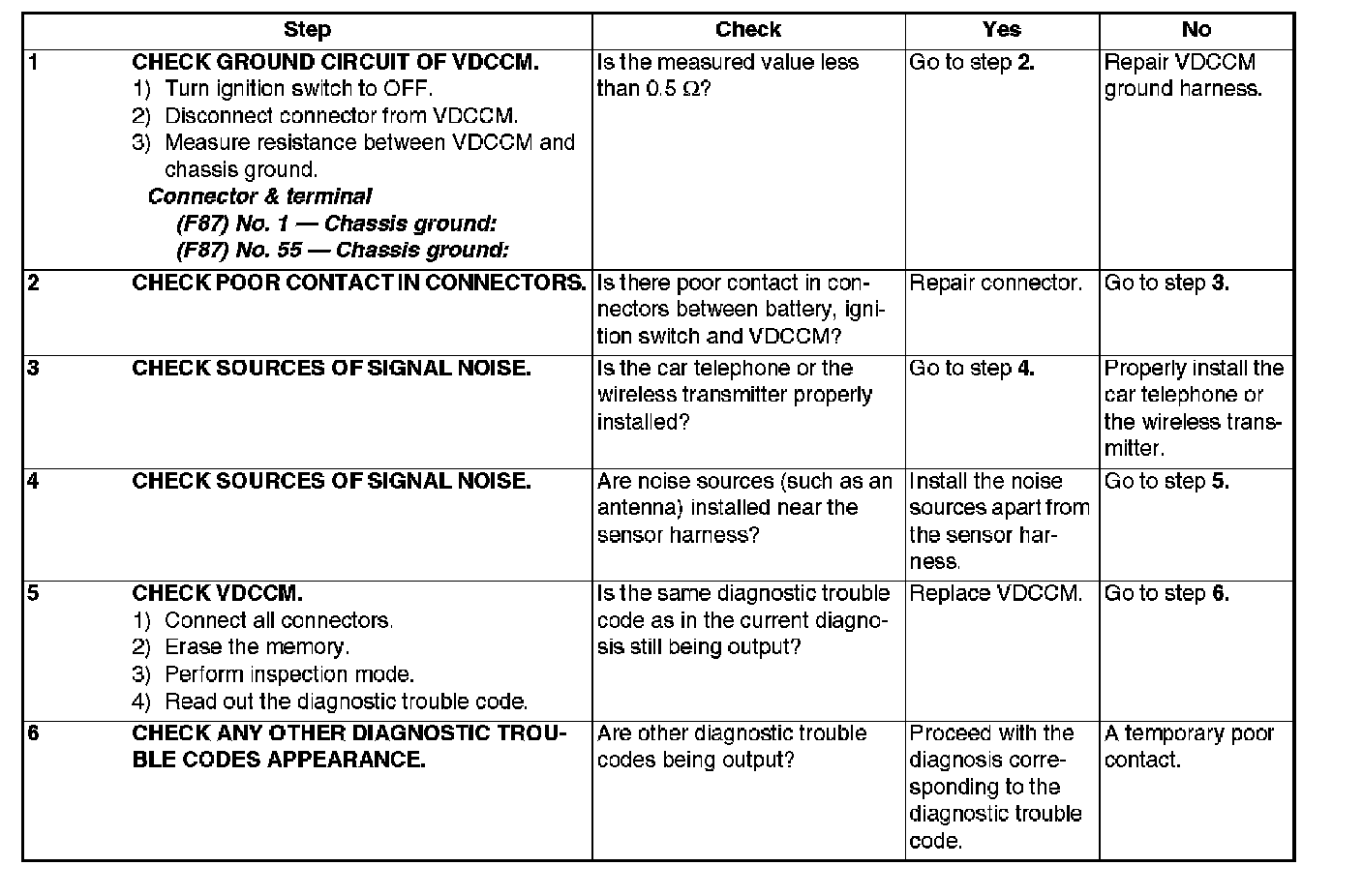 Faulty VDCCM TROUBLE SYMPTOM.