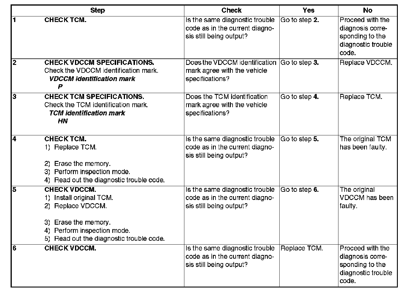 Vdc System Trouble Code Charts For Warning Light Codes