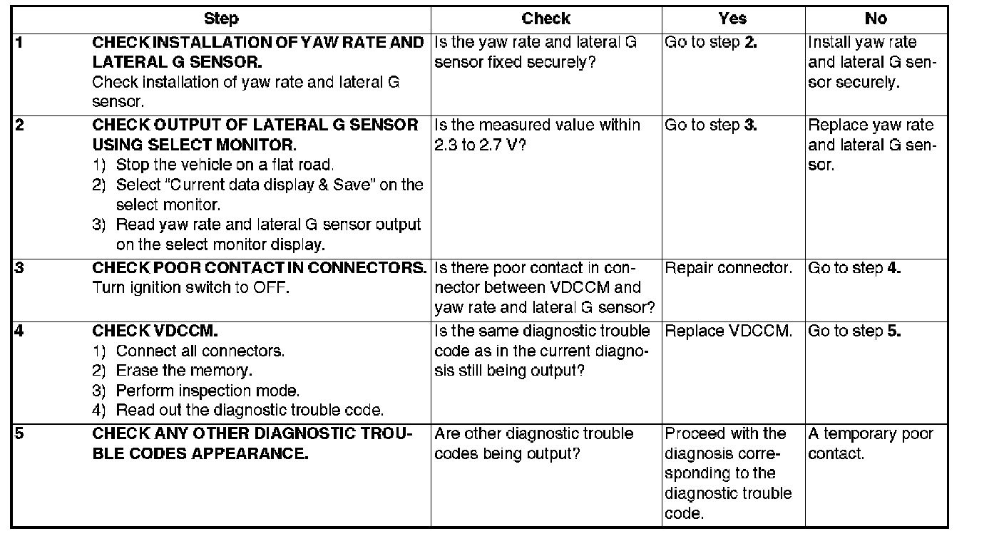 Vdc System Trouble Code Charts For Select Monitor Results