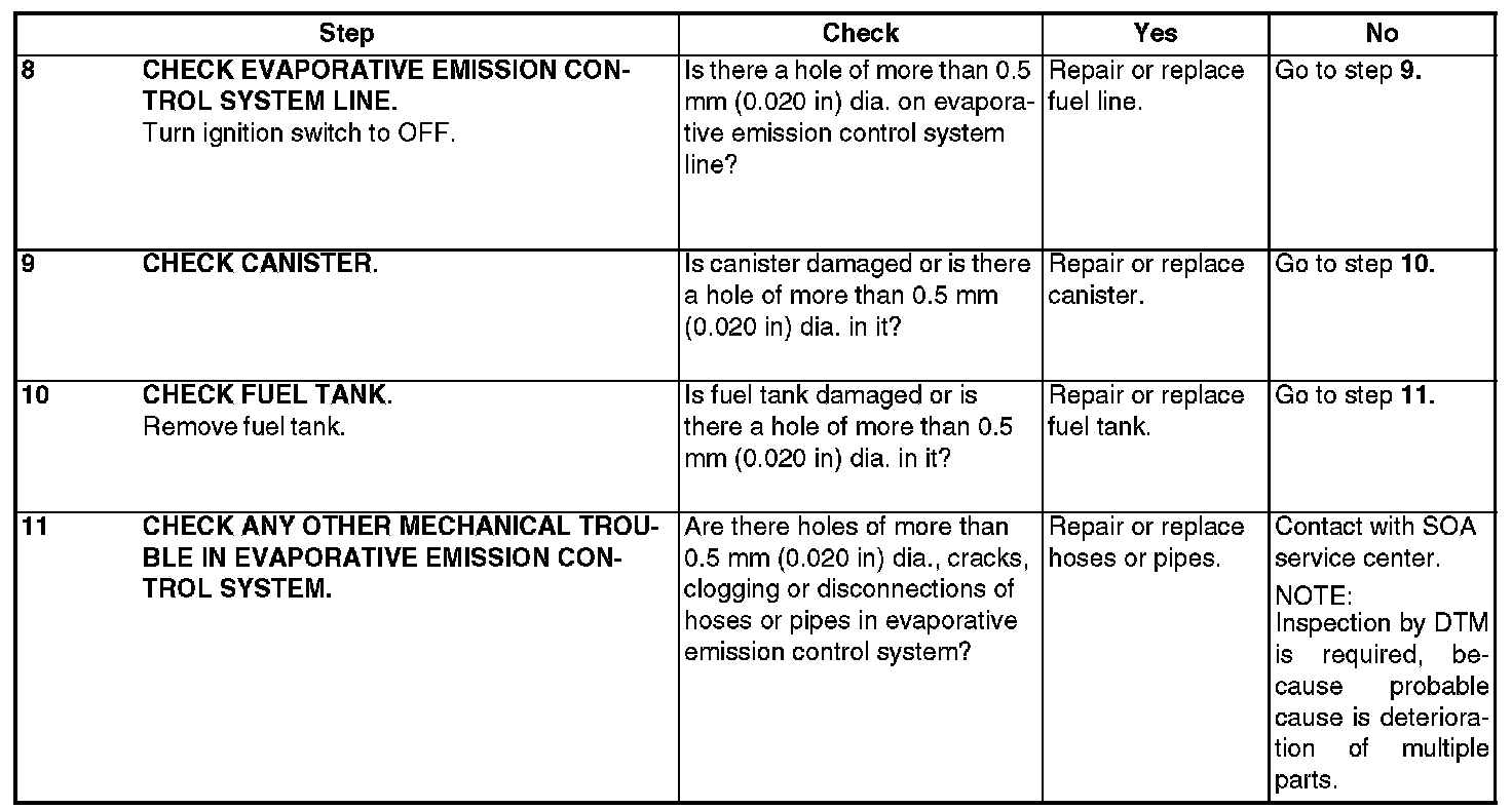 - There is a hole of more than 0.5 mm (0. O20 in) dia. in evaporation system or fuel tank.