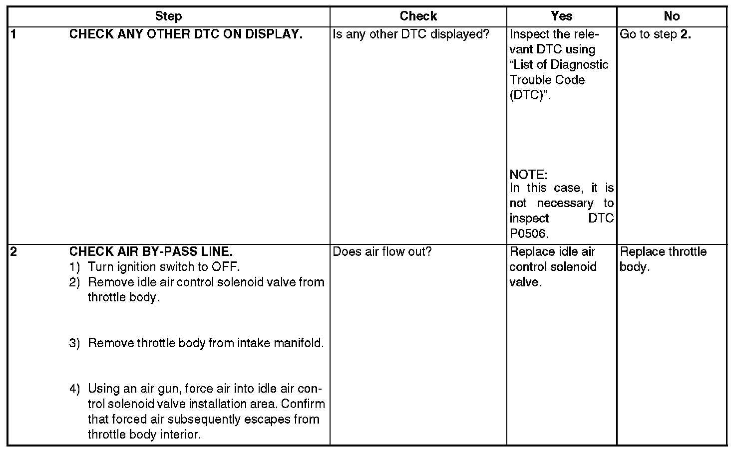 DTC P0506 - IDLE CONTROL SYSTEM RPM LOWER THAN EXPECTEDDTC DETECTING CONDITION