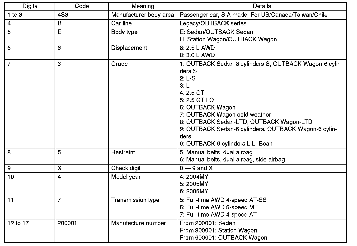The model number plate indicates: the applied model, the option code, the trim code, the engine type, the transmission type, and the exterior color code. This information is helpful when placing orders for parts.