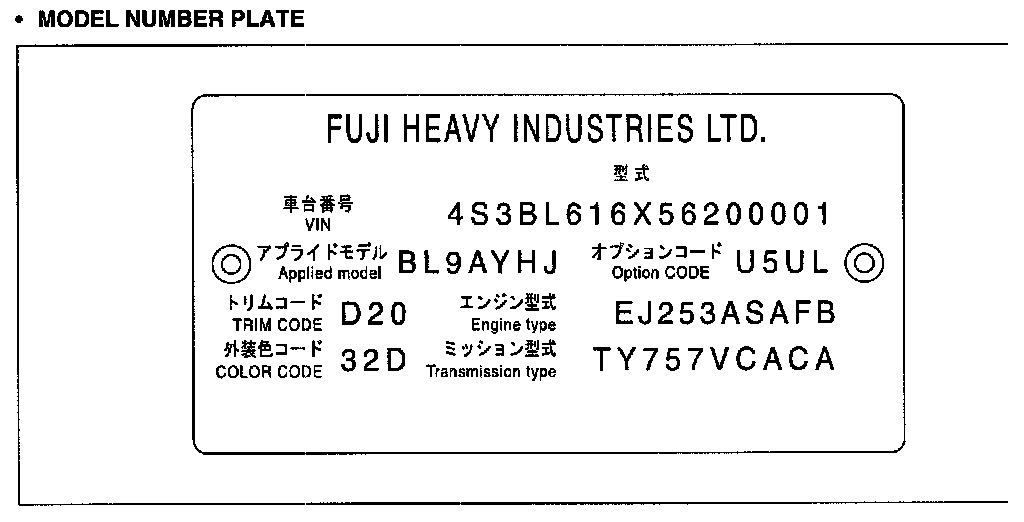 codes are found on the VIN plate located on the Left Strut Tower. The color code is depicted by a solid color or by a combined upper and lower color code.
