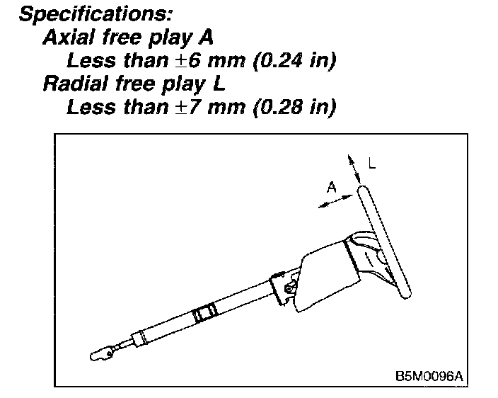 - Free play of the steering wheel is over specifications in axial and radial directions.