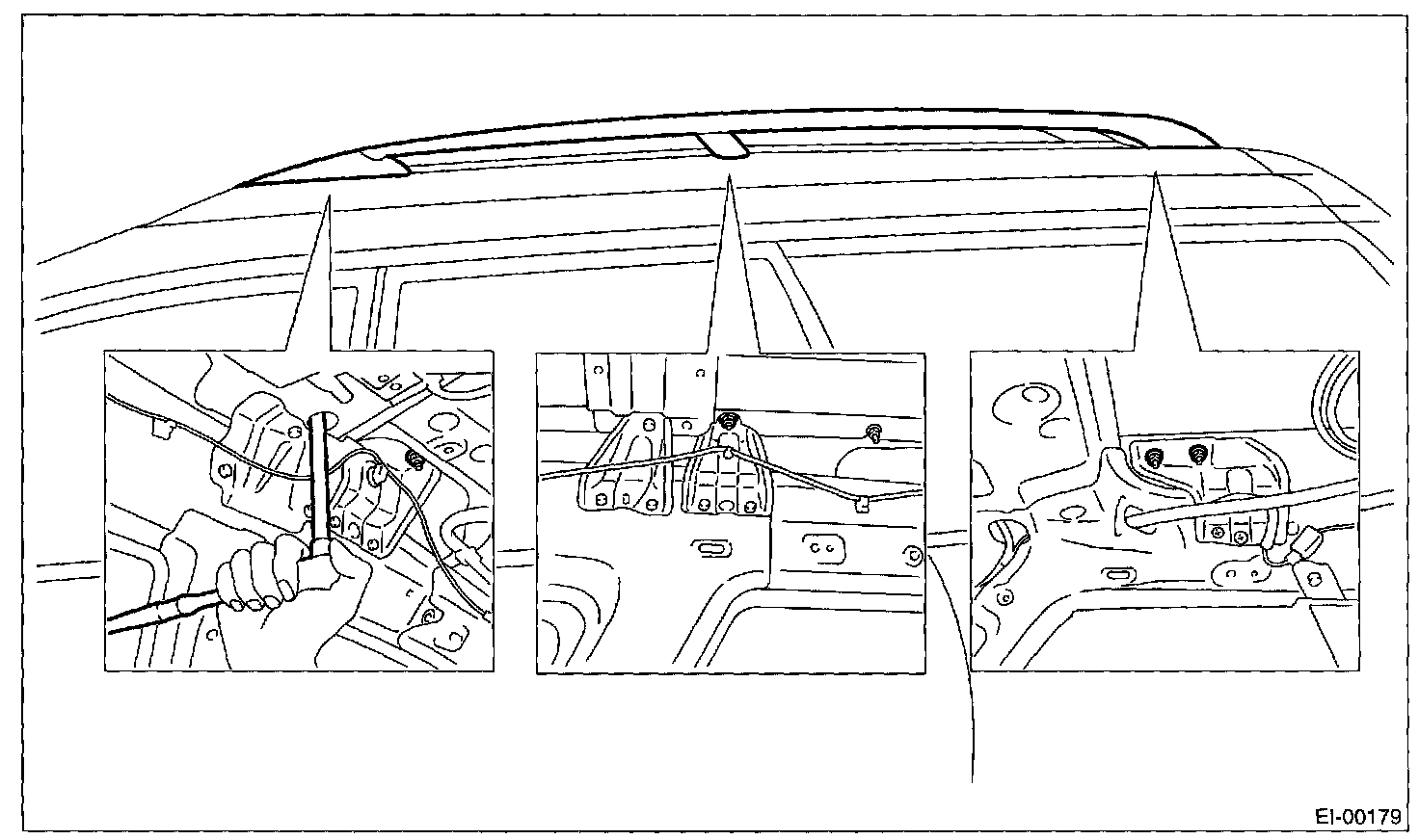 CAUTION: Be careful not to scratch body panels with roof rail stud bolts when removing and installing them.
