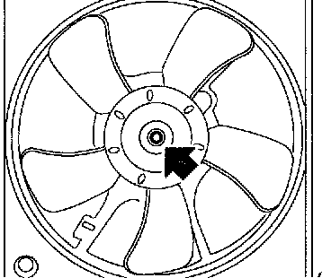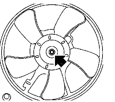 2. Remove nut which holds fan itself onto fan motor and shroud assembly.