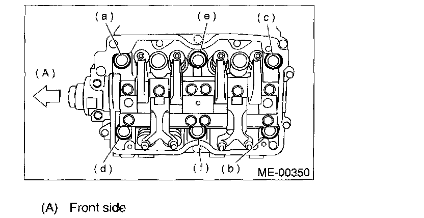 NOTE: Leave bolts (a) and (b) engaged by three or four threads to prevent cylinder head from falling.