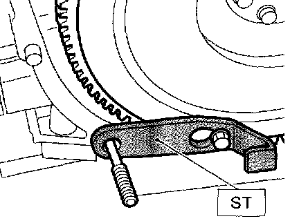23. Install flywheel or drive plate. To lock crankshaft, use ST.