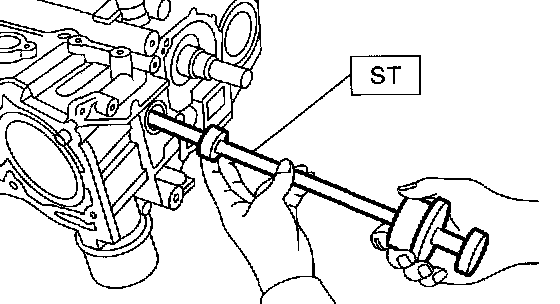 a. Discard front oil seal after removal. Replace with a new one using ST.