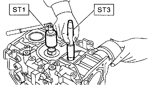 8. Install rear oil seal using ST1 and ST2.