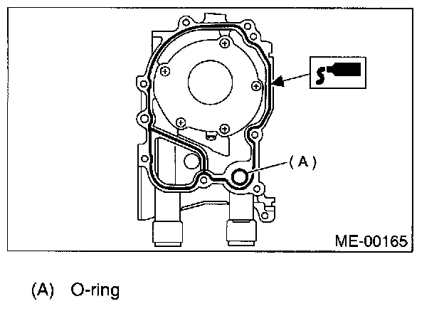 NOTE: Do not allow fluid packing to jut into O-ring grooves, oil passages, bearing grooves, etc.