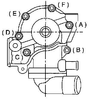 ^ When installing water pump, tighten bolts in two stages in alphabetical sequence as shown in figure.