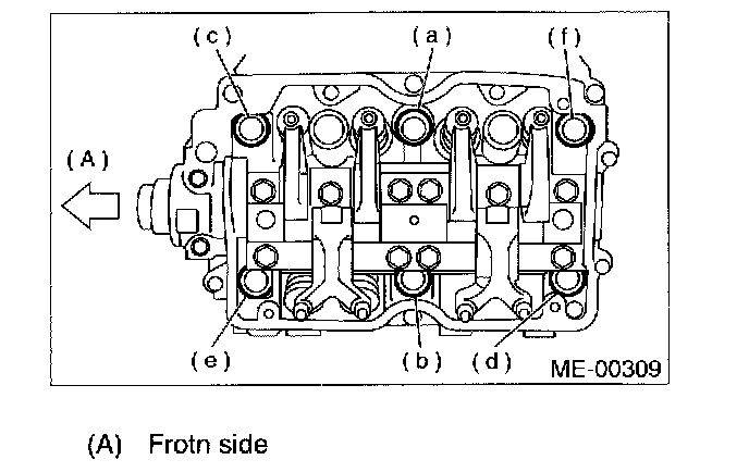 12. Remove bolts (a) through (c) to remove cylinder head.