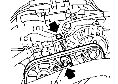 2. Install a belt (C), and tighten the slider bolt so as to obtain the specified belt tension