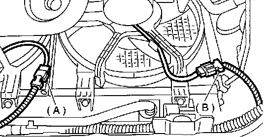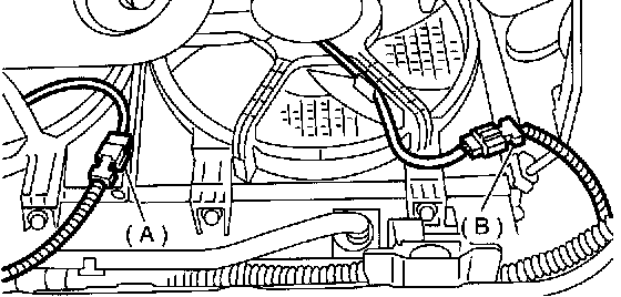 5. Disconnect connectors from radiator main fan (A) and sub fan (B) motors.