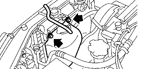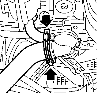 6. Disconnect radiator outlet hose and heater bypass hose from water pump.