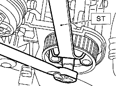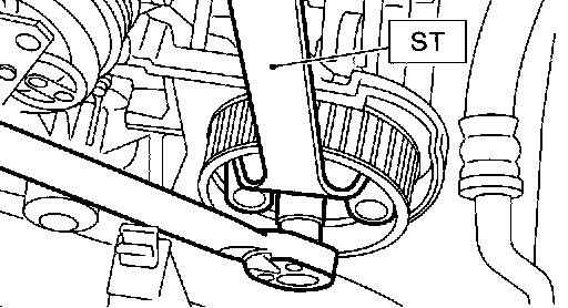 16. Remove left-hand camshaft sprocket by using ST.