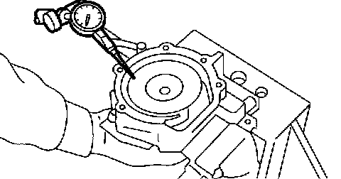 3. Using a dial gauge, measure impeller runout in thrust direction while rotating the pulley.