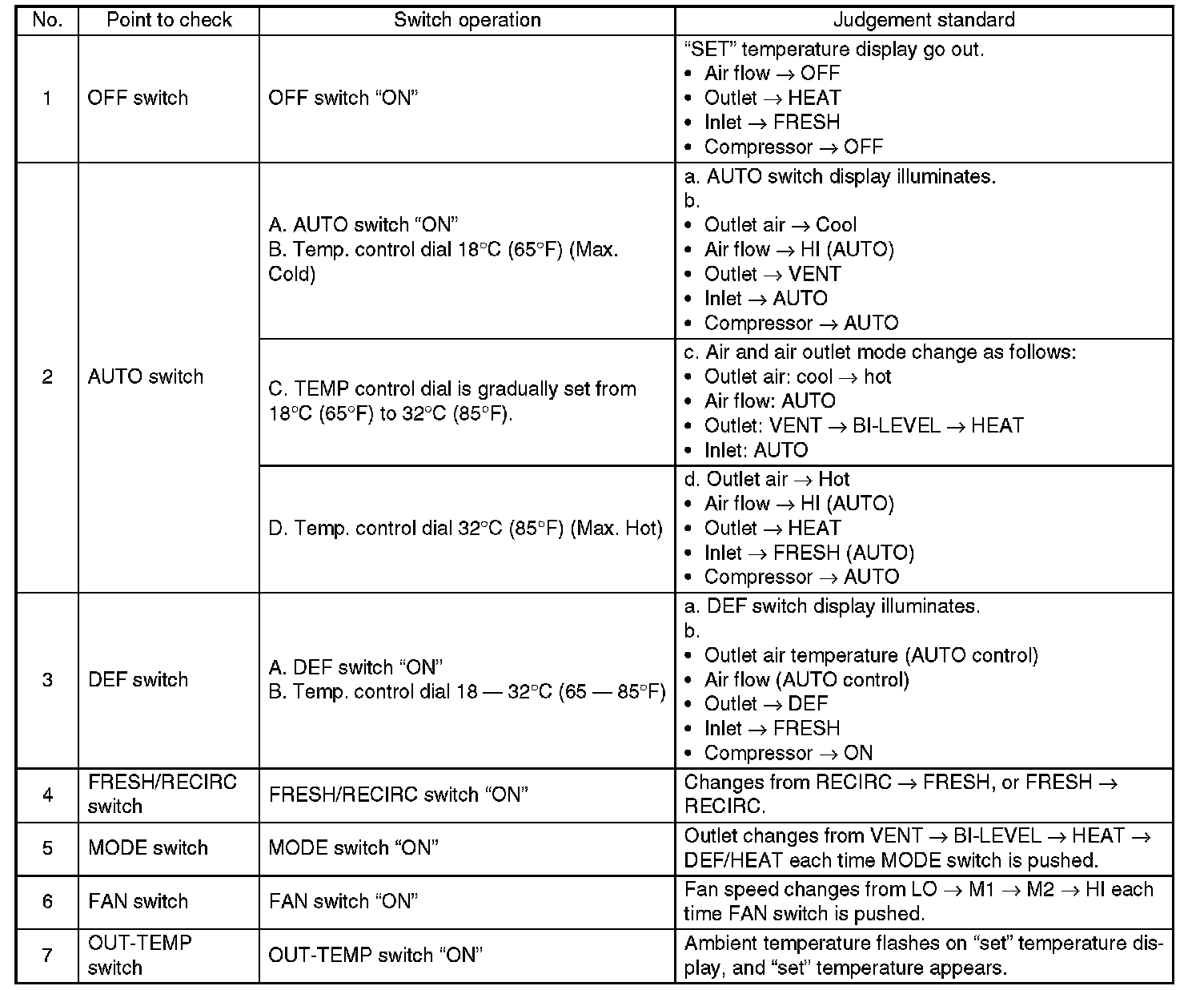 2. Check the condition of the fuses for A/C, heater and other fuses.